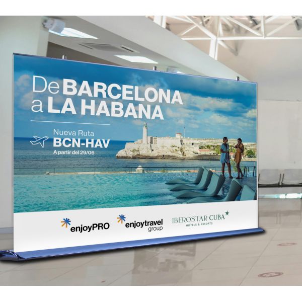 Medida de la impresión: 300x206 cm. (área visible 300x200 cm los 6 cm. inferiores quedan dentro de la estructura)